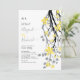 Grey branch with yellow flowers initials wedding invitation