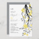 Ultimate grey branch with illuminating yellow flowers initials wedding invitation. A lovely design for your wedding featuring a cascading grey and black branch with yellow blossoms. The back is of grey colour.