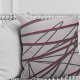 Modern throw pillow features an elegant abstract linear composition in burgundy and wine on a grey background. An artistic abstract design with an organic linear design features grey and burgundy accents on a lighter grey background.