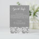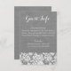 Burlap and Lace Information Card for a Rustic Wedding in grey. Get this card for your country chic wedding and add all the little details for your event. You can edit all of the text and move it any where you like. The back includes a burlap background.