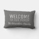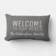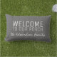 Grey burlap Welcome to our Porch Family name Lumbar Cushion