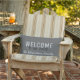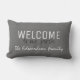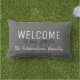 Grey burlap Welcome to our Porch Family name Lumbar Cushion