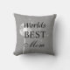 This rustic throw pillow has "Worlds Best Mum", written on it in interesting type with a delicate white dandelion on an illustrated grey burlap background, making it the perfect gift for the mum who likes rustic, country accessories on Mother's Day, her birthday, or other special occasion.