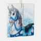 I have loved carousels since I was a child. The designs of the animals and music from carousels set up at fairs and parks have a special place in my heart. That served as the inspiration for drawing some carousel horses of my own, then painting them with acrylic ink. This watercolor of a grey horse decorated in blue is one of the results, uploaded and applied to these ornaments.