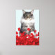 grey cat and red roses canvas print