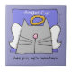 Sweet grey cat angel with halo and angel wings on a soft blue background, with "Angel Cat" text and a place below design to add your cat's name to make a wonderful memorial to a beloved pet.