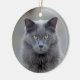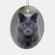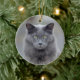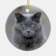Grey cat starring at you. You can add your own personal message on the ornament. Makes a great gift.