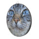 This design features an adorable image of a cat looking determinedly at the camera. It has a beautiful grey coat of fur.