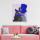 Grey Cat With Blue Top Hat and Moustache Canvas Print