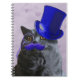 Grey Cat With Blue Top Hat and Moustache Spiral Notebook