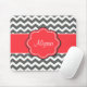 Show off your personal style in a fun way with this grey chevron and coral personalised mousepad.