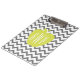 A gift for teachers featuring an illustration of a neon yellow apple over grey chevron. Personalise with your monogram.