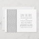 Chic and modern Chevron Border Save the Date Announcement featuring a simple chevron pattern border in grey and white. This stylish design will set the tone for an elegant wedding. Easy to customise, simply add your wedding details in the text fields provided. Click "Customise It" to find more personalisation options.