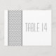 Chic and modern Chevron Border Table Number Postcard featuring a simple chevron pattern border in grey and white. This stylish design will set the tone for an elegant wedding. Easy to customise, simply add the appropriate table number(s) in the text field provided. Click "Customise It" to find more personalisation options.
