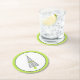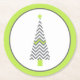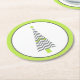 Modern holiday pulp board paper coasters done in white with a lime green and grey border and a grey and white chevron patterned Christmas tree with green accents. Customise to add text or leave as is for a fun addition to your holiday party. Matching invitations and party supplies are available.