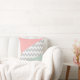 Stylish mint green and coral diagonal corners with a grey chevron centre- the back is coral - very pleasing and trendy for any room