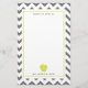 Stationery for teachers featuring an illustration of a neon yellow apple at bottom.  Border is grey chevron design.  Personalise the name.
