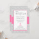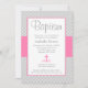 Grey Chevron Pink Cross Girl Baptism Christening Invitation