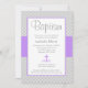 Grey Chevron Purple Cross Girl Baptism Christening Invitation