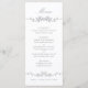Elegant grey floral border wedding menu with a floral crest and monograms on the back.