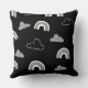 Grey Clouds and Rainbows on Black Throw Pillow