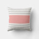 Elegant and modern nautical style Throw Pillows or cushions with a simple, modern and stylish striped pattern design that is custom monogrammed with your name in a preppy font. Grey and white vertical stripes contrasted with a Coral pink colour block background. Personalise your gift by adding your own name or initial. Choose your own font and colours to make it your own. This trendy design will make a great gift for yourself or someone special and will enhance any home, office, boat or dorm.