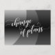 The background has been covered in a trio of bold grey curves with a subtle black ombre overlay. Using a pretty script font with swirls and waves, I created a graphic that reads "change of plans". The reverse side includes template placeholders for your details with matching accents featuring the calligraphy font. Use these template fields to add your personal details and change my draught wording to suit your needs and situation. Other pieces are available in the set and I'm happy to create additional variations upon request. // 99 //