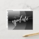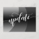 The background has been covered in a trio of bold grey curves with a subtle black ombre overlay. Using a pretty script font with swirls and waves, I created a graphic that reads "update". The reverse side includes template placeholders for your details with matching accents featuring the calligraphy font. Use these template fields to add your personal details and change my draught wording to suit your needs and situation. Other pieces are available in the set and I'm happy to create additional variations upon request. // 99 //