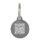Customisable grey QR code pet ID tag. This pet tag features a scannable QR code that enables anyone with a smartphone to access important information about your pet. You can easily generate a brand new QR code on the design via the "personalise this template " feature. Just add the URL of your contact webpage / social media page or you can even add your email address to the area provided.