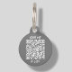 Customisable grey QR code pet ID tag. This pet tag features a scannable QR code that enables anyone with a smartphone to access important information about your pet. You can easily generate a brand new QR code on the design via the "personalise this template " feature. Just add the URL of your contact webpage / social media page or you can even add your email address to the area provided.