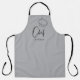 Custom chef apron feature cute chef script and hat with personalised name on grey background. Great personalised chef apron.