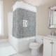 White and grey damask pattern with white scalloped borders and monogram shower curtain. On the upper and the bottom parts of the curtain there are white bands with scalloped edges while in the centre there is your monogram in a white frame. You can personalise it with your name.