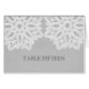 Simple and sophisticated Elegant Lace Wedding Table Number Card featuring a white lace doily motif on a light grey faux vintage paper background. This classic and stylish table card is perfect for a rustic wedding. Easy to customise with the appropriate table number(s). Click "Customise It" to find more personalisation options.
