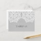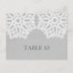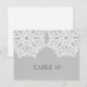 Simple and sophisticated Elegant Lace Wedding Table Number Postcard featuring a white lace doily motif on a light grey faux vintage paper background. This classic and stylish table card is perfect for a rustic wedding. Easy to customise with the appropriate table number(s). Click "Customise It" to find more personalisation options.