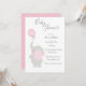 Watercolor simple grey elephant with pink balloon, pretty script baby girl shower invitation. So precious and sweet is the only way to describe this invite. Sweet-n-Simple. Many matching products available to complete your theme.