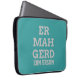 Dorky and fun typography text design Laptop Sleeve featuring a word from the popular meme of Ermahgerd. Ermahgerd is a very obnoxious and lisped way to say "Oh my God!" Customise with your own text and background colour. Use an ermahgerd translator such as this one [http://ermahgerd.jmillerdesign.com/#!/translate] to make your personalised text even more silly!