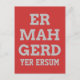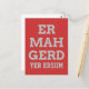 Dorky and fun typography text design postcard featuring a word from the popular meme of Ermahgerd. Ermahgerd is a very obnoxious and lisped way to say "Oh my God!" Customise with your own text and background colour. Use an ermahgerd translator such as this one [http://ermahgerd.jmillerdesign.com/#!/translate] to make you personalised text even more silly!