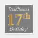 Grey, Faux Gold 17th Birthday + Custom Name Napkin