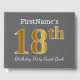 This guest book design features the ordinal number "18th" with a faux/imitation gold-like appearance. It also features a customised name, and a grey (grey) coloured background. It could be used at a birthday party for somebody who is celebrating their eighteenth birthday. [~Z0000193]