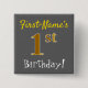 Grey, Faux Gold 1st Birthday, With Custom Name 15 Cm Square Badge