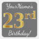 Grey, Faux Gold 23rd Birthday + Custom Name Square Sticker