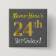 Grey, Faux Gold 24th Birthday, With Custom Name 15 Cm Square Badge