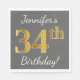 Grey, Faux Gold 34th Birthday + Custom Name Napkin