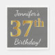 Grey, Faux Gold 37th Birthday + Custom Name Napkin