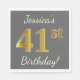 Grey, Faux Gold 41st Birthday + Custom Name Napkin