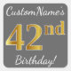 Grey, Faux Gold 42nd Birthday + Custom Name Square Sticker