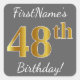 Grey, Faux Gold 48th Birthday + Custom Name Square Sticker