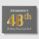 This guest book design features the ordinal number "48th" with a faux/imitation gold-like appearance. It also features a personalised name, and a grey (grey) coloured background. It could be used at a birthday party for somebody who is celebrating their forty eighth birthday. [~Z0000193]