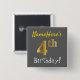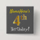 Grey, Faux Gold 4th Birthday, With Custom Name 15 Cm Square Badge