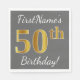 Grey, Faux Gold 50th Birthday + Custom Name Napkin
